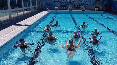 L’aquagym, aussi appellé aquafitness est un sport aquatique pratiqué en piscine. Cette discipline dont les séances sont généralement collectives peuvent se pratiquer à tout âge pour maintenir la forme, et développer ses capacités cardio-vasculaires, tout en évitant les courbatures. Souvent en musique, les adeptes sont majoritairement féminines. De nombreuses piscines parisiennes ont des créneaux horaires réservés aux séances d’aquagym.